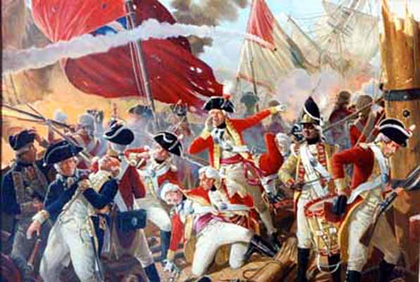 The "Brunswick", with 81 men of the 29th aboard was played into battle by the ship's band and a drummer from the 29th with a popular tune of the day 'Hearts of Oak'. "Brunswick" sustained a most tremendous conflict, being singly engaged for a considerable time with three seventy-fours. One of these "Le Vengeur" she sent to the bottom. At one stage of the battle another of the seventy-fours seeing that "Brunswick" was much weakened by her exertions, determined to board and manned her yards and shrouds with a view to running alongside and flinging in all her crew at once. "Brunswick" with great intrepidity and coolness reserved a whole broadside and waited her approach; then in one discharge the "Brunswick" dismasted her and "scattered her crew like so many mice on the ocean". So closely at times was the "Brunswick" engaged that she was unable to haul up her lower-deck port lids and was obliged to fire through them. During the fierce fighting, the 29th detachment Commander, a Captain was killed and the Ensign and 20 others were wounded.